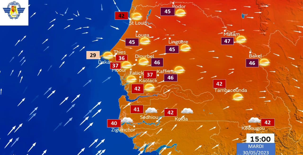 Les températures resteront élevées à l’intérieur du pays surtout à l’Est et au Centre avec des maxi de 42 à 47°C. Quant aux localités côtières, il y fera relativement moins chaud.